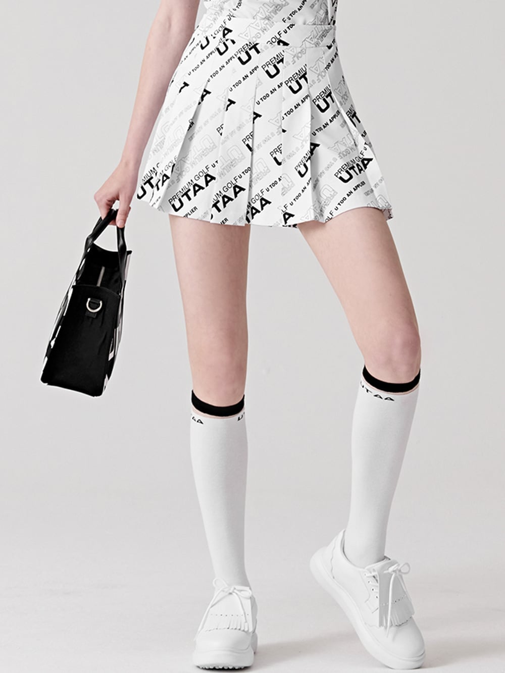 UTAA Logo Slogan Wave Pleats Skirt : White